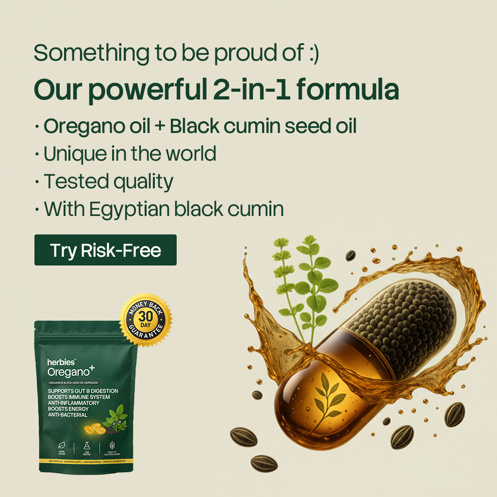 Herbies™ is a powerful anti-inflammatory supplement specifically designed to target digestive inflammation—the hidden root cause of gas, bloating, constipation, and poor nutrient absorption. Each softgel combines high-potency oregano oil (6,000 mg) with black seed oil (200 mg)—two clinically studied botanicals shown to reduce intestinal inflammation, restore gut barrier function, and support comfortable digestion. No harsh laxatives. No temporary fixes. Just lasting relief from the inside out.